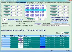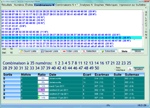 présente cette fois-ci pour les combinaisons de numéros avec affichage d'un tableau