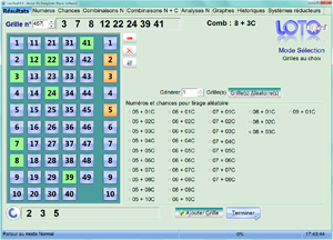 Possibilité de sélection aléatoire de combinaisons (jeu simple: 5N + 1C ou jeu multiple: 5N + 2C ..... 9N + 1C)