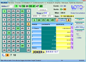 Il est possible de visualiser les numéros et chances communs entre deux tirages successifs grâce au bouton "communs", cette option est facultative.