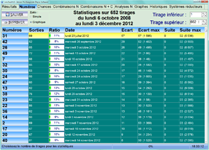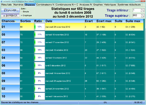 Ces statistiques sont modulables (c'est à dire que vous pouvez sélectionner votre intervalle d'étude et ne choisir que les tirages du mois en cours par exemple...)