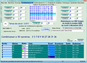 Des options de calcul existent au niveau du tri des combinaisons trouvées selon des critères précis. Cela permet de mettre en relief de façon très rapide les grilles susceptibles de sortir.