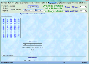 Analyses des numéros elles aussi modulables (choix d'un intervalle).