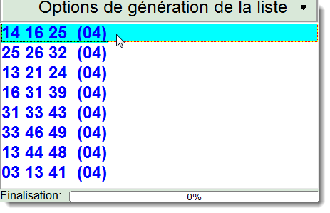 toutes les combinaisons à 2 numéros. Activez les options de tri et