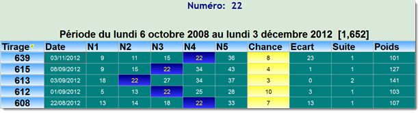 chances (ces libellés représentant les rangs, numéros, chances) : L'historique pour le rang correspondant s'ouvre presque immédiatement Exemple : pour le numéro 22